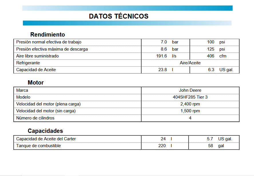 5-20 bar (72-300 psi) - 10-24 m³/min (360-850 cfm)